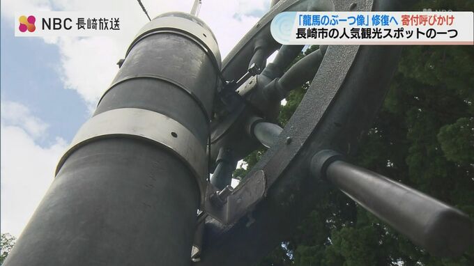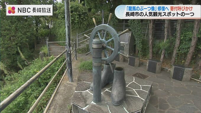 坂本龍馬が長崎港を一望した場所に立つ「龍馬のぶーつ像」に異常がみつかり、建立した市民団体では修繕のためのクラウドファンディングを実施しています。