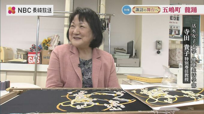 今年の奉納で、玉遣いの衣装が新調されます。製作期間およそ3年半ー。中国の東西南北の守り神をモチーフに衣装の刺繍が完成しました。