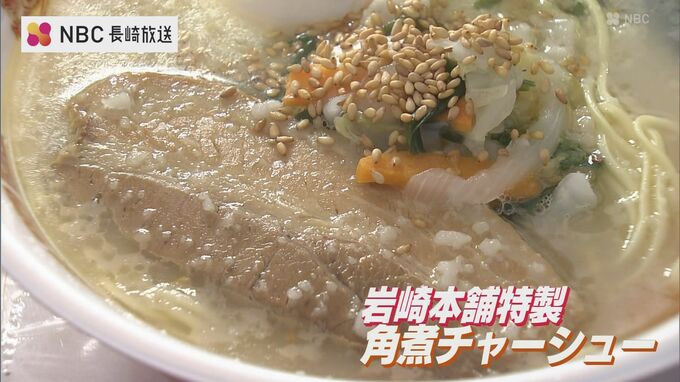 長崎県産のあごなどを出汁にとり、「長崎の味」を感じさせる1杯です。岩崎本舗が伝統の角煮を生かした新しい商品を開発し地元の人に楽しんでもらおうと、福岡のラーメン店「一風堂」とコラボした「潮(しお)とんこつラーメン」を作りました。14日と15日の2日間、数量限定の販売会が開かれています。