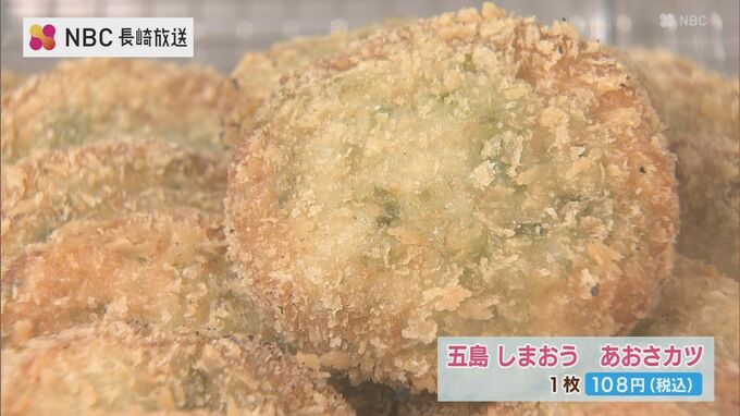 こちらは「エソ」のすり身に、五島でとれた「あおさ」がふんだんに練り込まれた「あおさカツ」