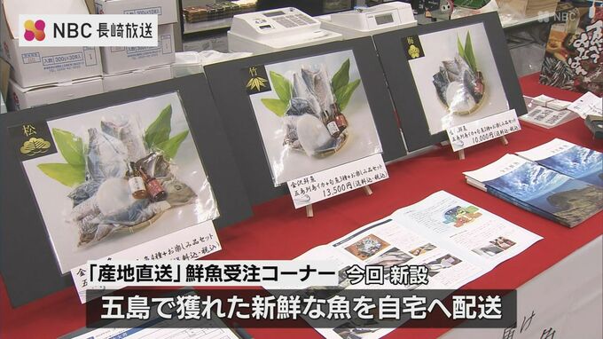 五島で獲れた新鮮な魚が自宅に届く「鮮魚受注コーナー」も設けられています。