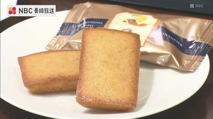 「九十九島せんぺい」を砕いたものと千葉県八街産のピーナッツを生地に練り込んだ「九十九島せんぺいフィナンシェ」。長きに渡り開発に取り組み、ようやく完成した待望の新商品、70年以上守り続けた伝統製法から生み出された、九十九島せんぺいの新スイーツと打ち出しています。
