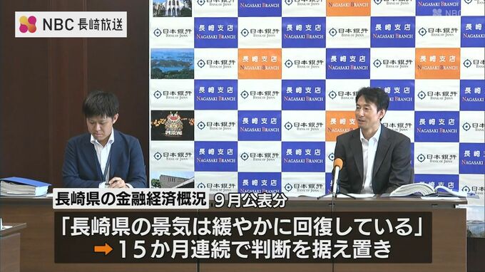 日本銀行長崎支店は県内の景気について「緩やかに回復している」と15か月連続で判断を据え置きました。