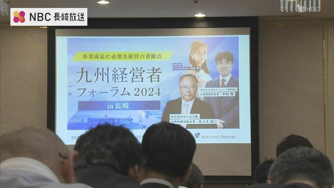 九州経営者フォーラムイン長崎は、企業の合併や買収を仲介するM&Aキャピタルパートナーズなどが県内で初めて開催したもので、地元企業の経営者らおよそ100人が参加しました。