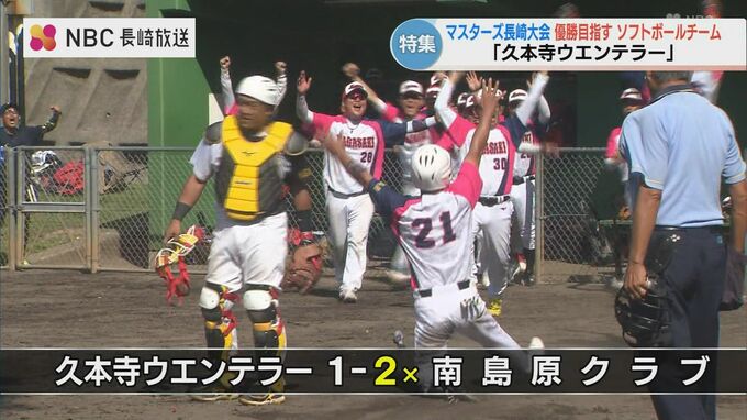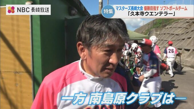 先月末に行われた大会、対戦相手は同じ長崎県代表としてマスターズに出場する「南島原クラブ」です。久本寺ウエンテラーの先発は投手陣の柱、北川康徳さん(52)。多彩な変化球と緩急織り交ぜた投球で相手バッターを打ち取っていきます。