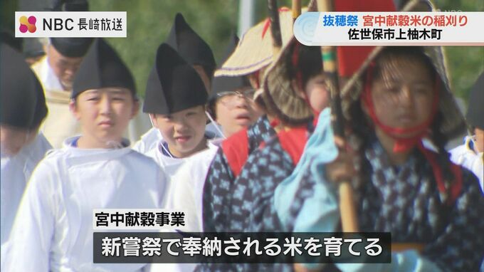 皇居で行われる新嘗祭に奉納される宮中献穀米の稲刈り=抜穂祭が、1日長崎県佐世保市で行われました。