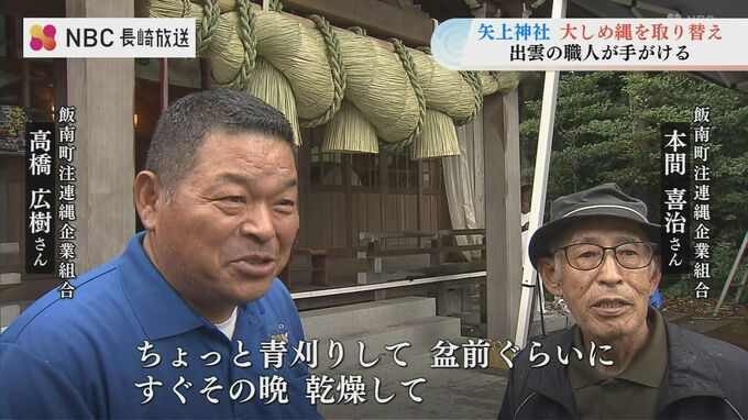「矢上くんち」が行われる長崎市の矢上神社で2日、4年ぶりに大しめ縄が取り替えられました。