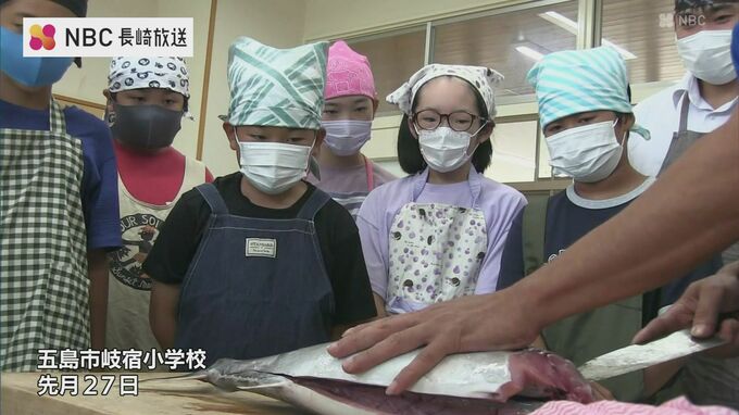長崎県五島市の小学校で、児童らが魚のさばき方を学ぶ水産教室が開かれました。