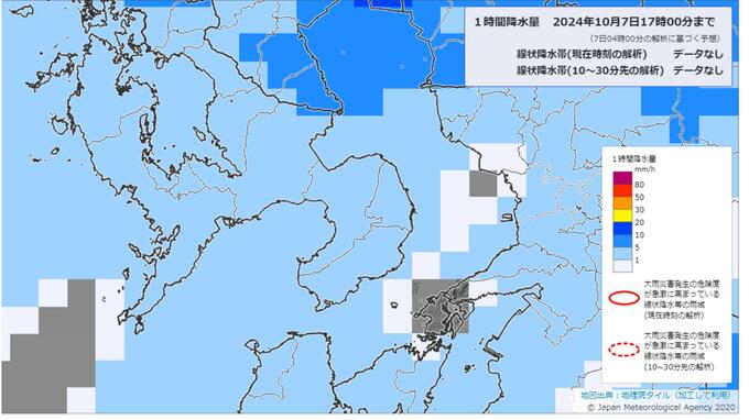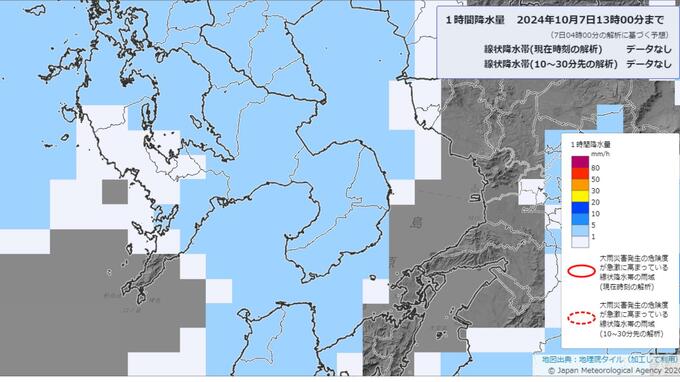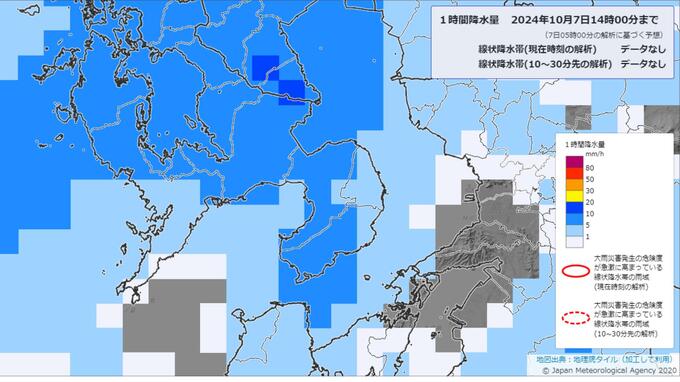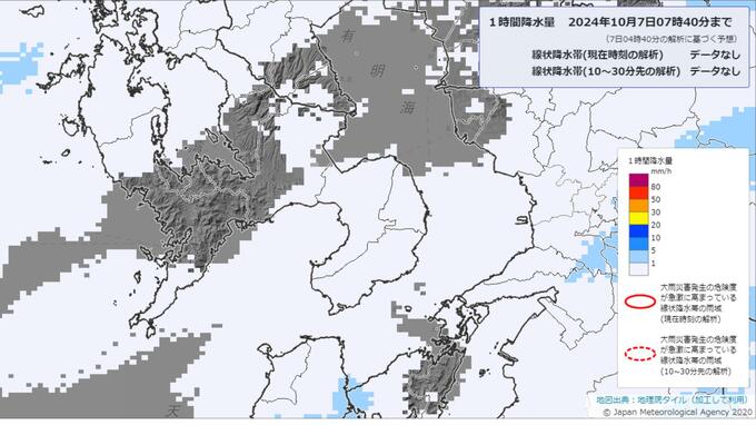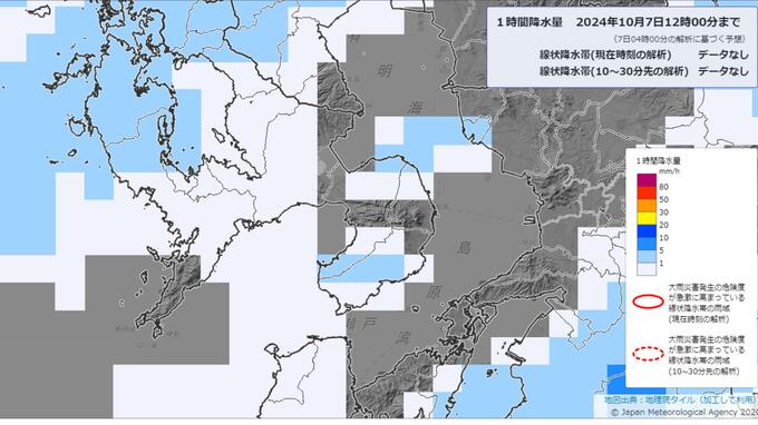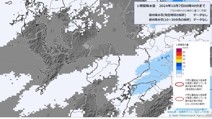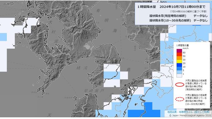 7日午前4時台のデータを基にした気象庁の降水短時間予報によりますと、7日午前の長崎市では断続的に1ミリ以下の雨が予想されています。午後からは次第に雨量が増える見込みです。