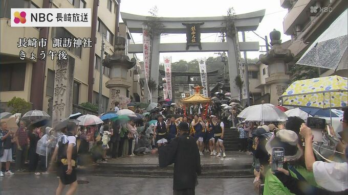 長崎くんち前日の7日、諏訪神社のご神体を乗せた神輿がお旅所へ向かう「お下り」が行われました。