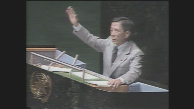 1982年6月、長崎の被爆者山口仙二さんがアメリカ・ニューヨークの国連本部で被爆者として初めて演説しました。米ソ冷戦の時代、世界の終わりをカウントダウンする終末時計は『3分前』。核戦争勃発の危機が高まる中、国連初の被爆者の訴えは許可されました。