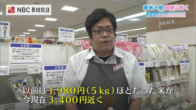 長崎市の「ゆめタウン夢彩都」では、今月に入り新米が少しずつ入荷するようになりましたが、価格は高い状態が続いています。