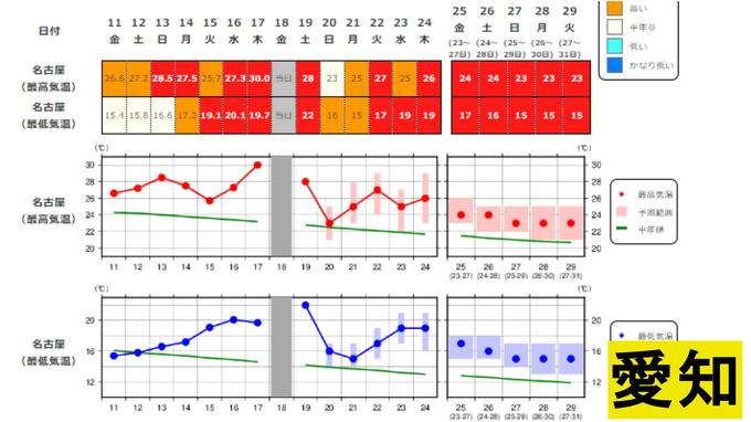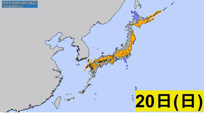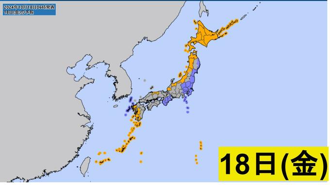 18日(金)は日本付近は季節外れの暖気に覆われる見込みです。19日(土)は寒冷前線の南下で全国的に雨が降る予想で、この雨を境に強い寒気が南下して気温が下がり、季節がぐっと進む見込みです。その後は再び気温が上がる予想となっています。短い周期で天気が変わる見込みとなっていますので、体調管理にお気を付けください。