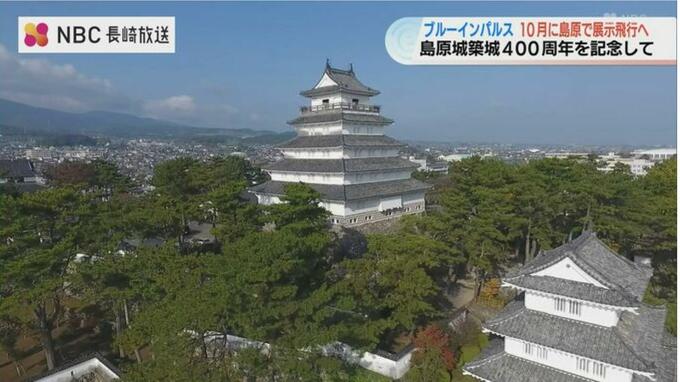 長崎県島原市の「島原城」築城400周年記念事業として、10月20日「ブルーインパルス展示飛行」が島原市上空で行われます。飛行ルートや課目、当日の交通規制について詳しくお伝えします。(飛行ルートは「画像」で確認できます)