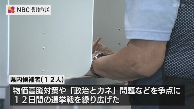 長崎県内では12人が立候補していて、物価高騰対策や、政治とカネの問題などを争点に12日間の選挙戦を繰り広げました。