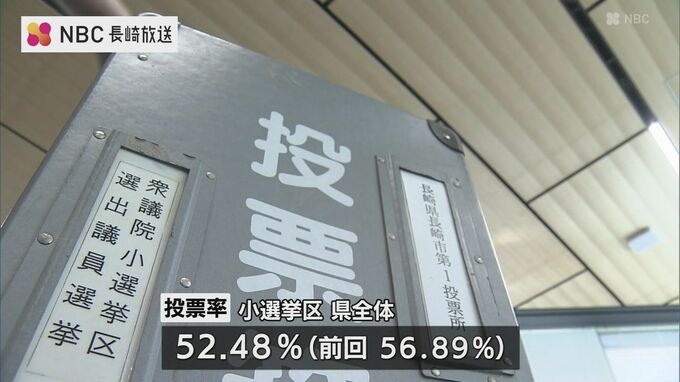 衆院選小選挙区の県全体の投票率は52.48%で、前回を4.41ポイント下回りました