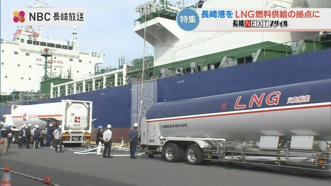 福岡市に本社を置く西部ガスは、タンクローリーを使って、長崎港で船にLNGを供給しています。長崎の造船会社にとっては、燃料基地がある北九州市まで船を運ぶよりも経費削減につながるといいます。