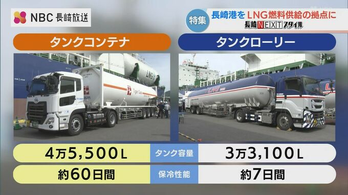 作業効率アップを図ろうと、今月、タンクローリーよりも容量が大きいコンテナを使った実証実験が行われました。コンテナは保冷性能が高いため、60日間LNGを保管できます。