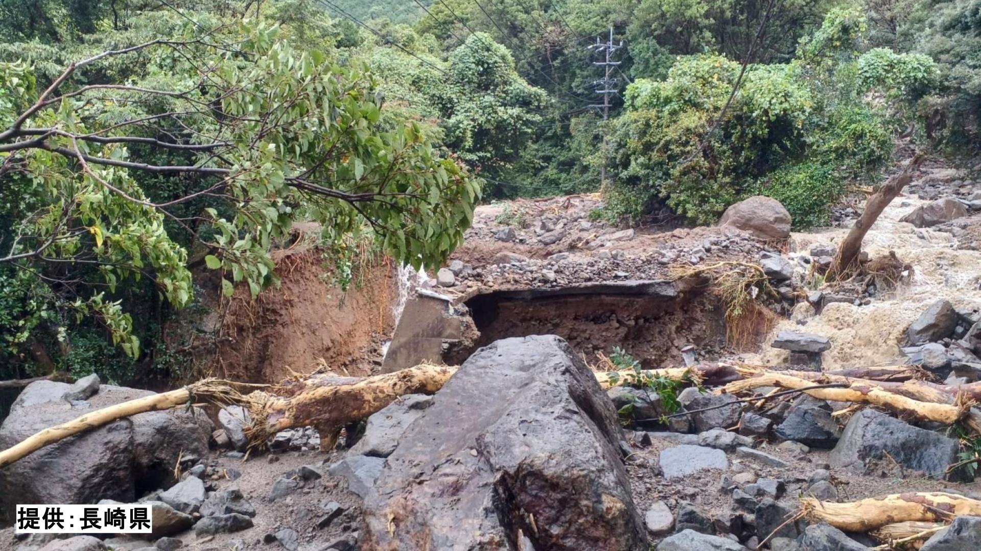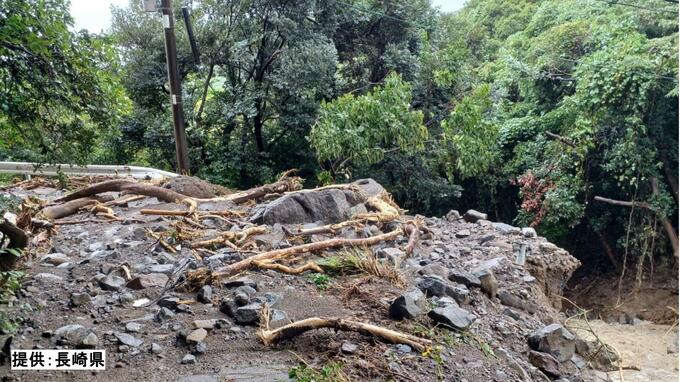 1日夜から降り続いた雨により、長崎県平戸市では山頂付近で大規模な土砂崩れが発生、流れ落ちた大量の土砂により道路が崩落しています。現場は二次被害のおそれがあるため近づけず、被害の全容は分かっていません。