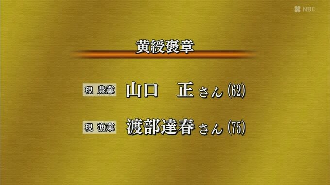 その道一筋に励み人々の模範となる人に贈られる黄綬褒章には、諫早市で農業を営み県産ばれいしょの出荷体制の整備にも貢献した山口正さんと、一本釣り漁業に従事し後継者の育成にも力を入れる南島原市の渡部達春さんが選ばれました。