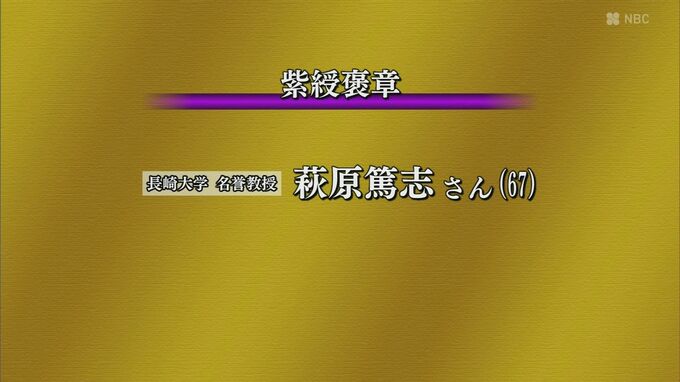 また、学術分野などで優れた業績を挙げた人に送られる紫綬褒章には、水産学研究で功績を挙げた長崎大学名誉教授の萩原篤志さんが選ばれました。