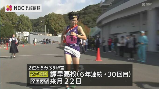 長崎県高校駅伝が5日、諫早市の県立総合運動公園の周回コースで開催され、女子は、諫早高校が6連覇を果たしました。