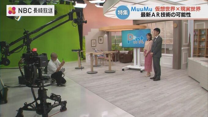 例えばPintのポスターにそのQRコードをつけておけば…読み取った場所に合成される形でキャスターが出てきて番組を紹介します。