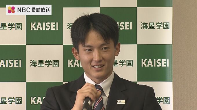 浦田俊輔選手(22)。長崎県時津町出身で海星高校から九州産業大学に進学。リーグ戦MVPやベストナインなどを受賞。今年のプロ野球ドラフト会議で読売ジャイアンツから2位指名。