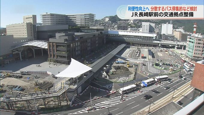 長崎の「陸の玄関口」JR長崎駅周辺の交通の利便性向上に向けた検討会が13日で開かれ、現在分散しているバス停を一か所に集約する方針などについて話し合われました。