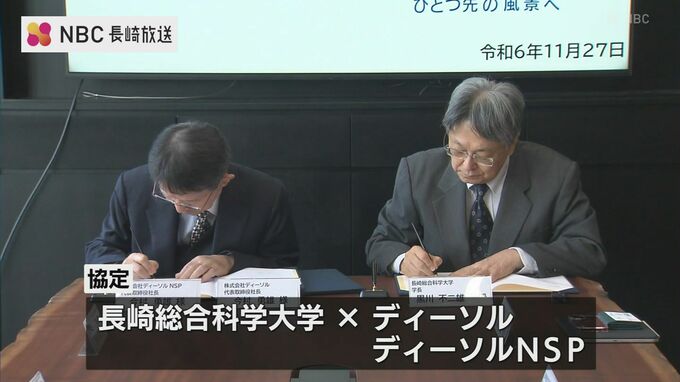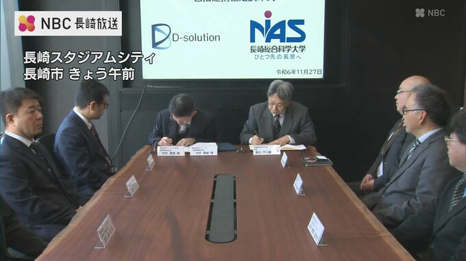 長崎総合科学大学と協定を結んだのは人工知能などを扱う東京のディーソルと、グループ会社で長崎スタジアムシティ内にある ディーソルNSPです。