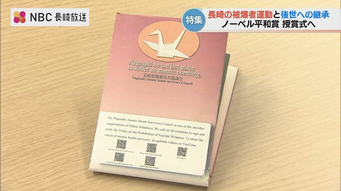 長崎被災協ではいま、被爆者が核兵器廃絶を願い続けていることを知らせるリーフレットを作成しています。副会長の横山照子さんはこれを授賞式が行われるノルウェーで出会った人に手渡すことにしています。