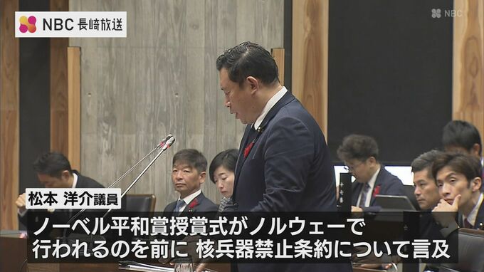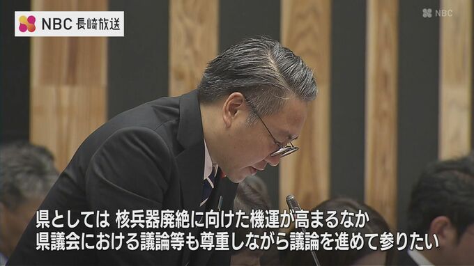 11月定例長崎県議会の一般質問が2日から始まり、大石知事は、県として核兵器禁止条約への批准を日本政府に求めることについて明言を避けました。