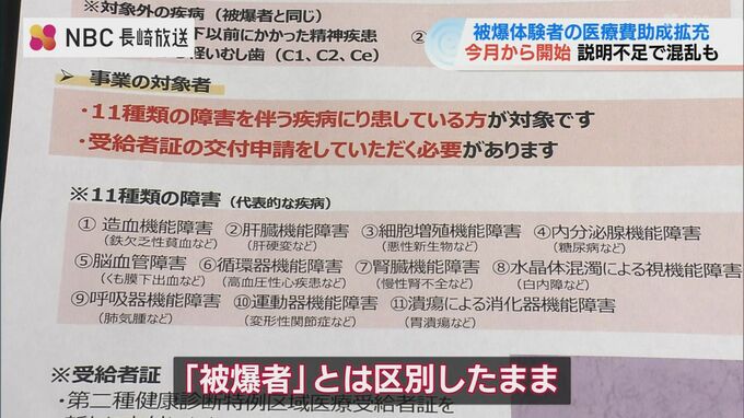 「分かりにくいですね。今までも色んな制度が変わってきたんですけど。放射線と関係がないとずっと言い続けてきた被爆体験者に放射線と密接な関係がある(被爆者)健康管理手当の11疾病を要件にしたというのは全く矛盾する話」