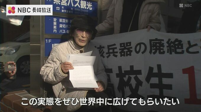 被爆者と認められていない被爆体験者の岩永千代子さんからは、体内に放射性微粒子が入った「内部被ばく」で多くの人が病に苦しみ、亡くなったことを伝える手紙が託されました。