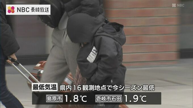 また、島原市で1.8度など県内16の観測地点で今シーズン一番の冷え込みとなっています。