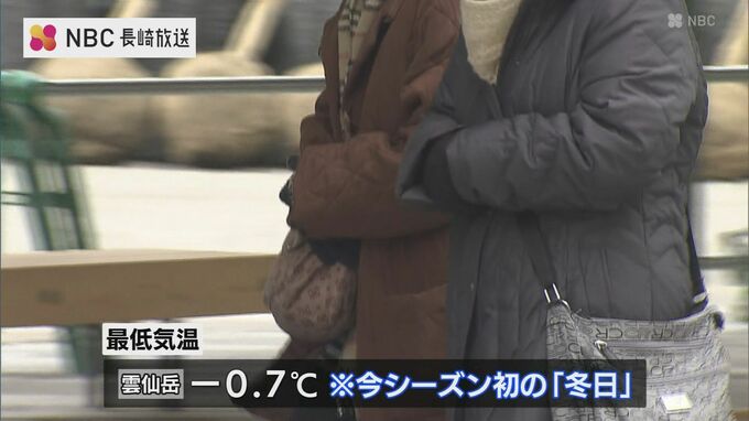九州北部の上空に強い寒気が流れ込んだ影響で、9日未明に雲仙岳では最低気温マイナス0.7度を観測し県内では今シーズン初の「冬日」となりました。