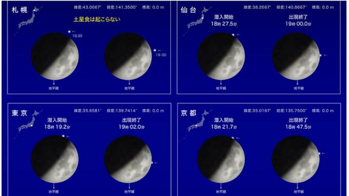 見られる地域と見られない地域の境界線「北限界線」が日本列島を縦断する形で通っており、限界線上より南の広い範囲で土星食が見られたと考えられます。