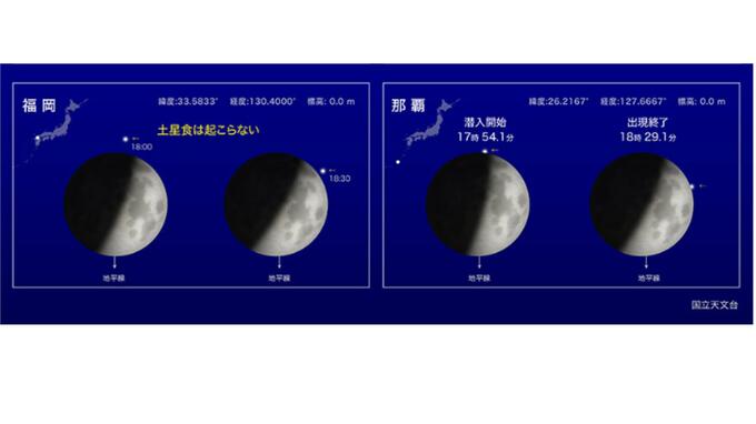 土星食は、土星・月・地球が一直線上に並び、地球から見て土星が月に隠される現象です。(画像提供「国立天文台」)