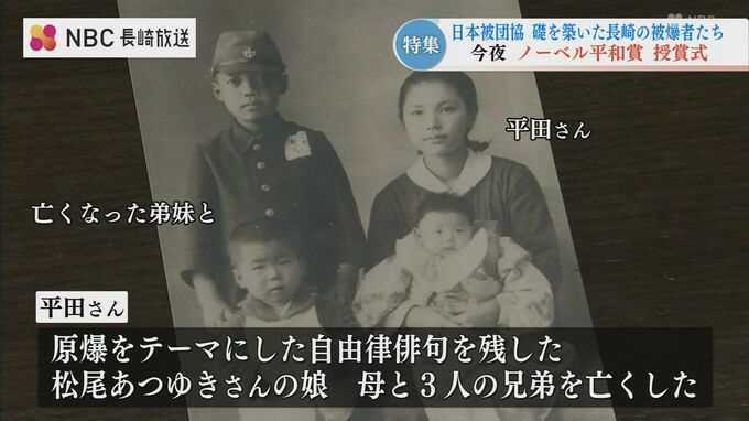 原爆をテーマにした自由律俳句を残した松尾あつゆきさんの娘で、母と、3人の弟妹を原爆で亡くしました。