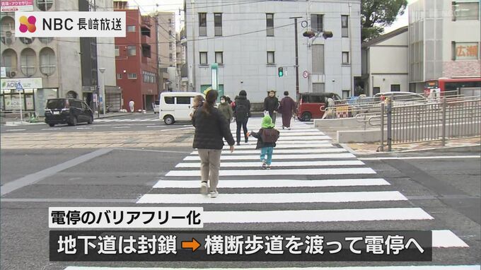 また、電停をバリアフリー化するため横断歩道が新設されこれまでの地下道は一部が通行できなくなっています。