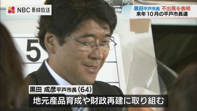 長崎県平戸市の黒田成彦市長は、来年秋に行われる次の市長選挙に出馬しないことを表明しました。