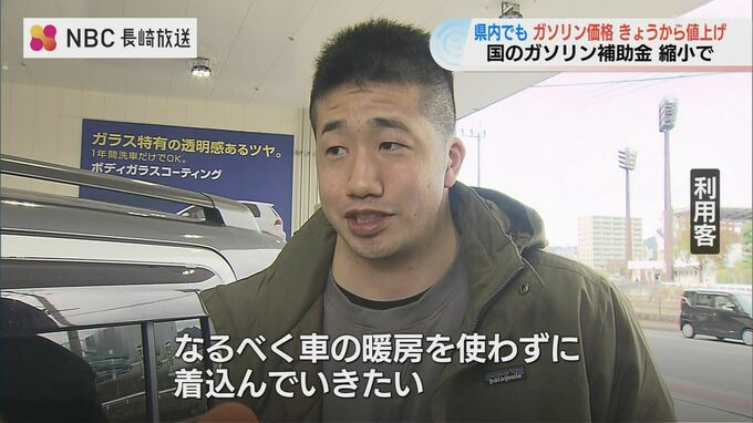 「長崎は元々東京とかよりも高い値段になっているのに、値上がりするのは本当に厳しいですね。なるべく車の暖房とか使わずに、着込んでいきたいと思っています」