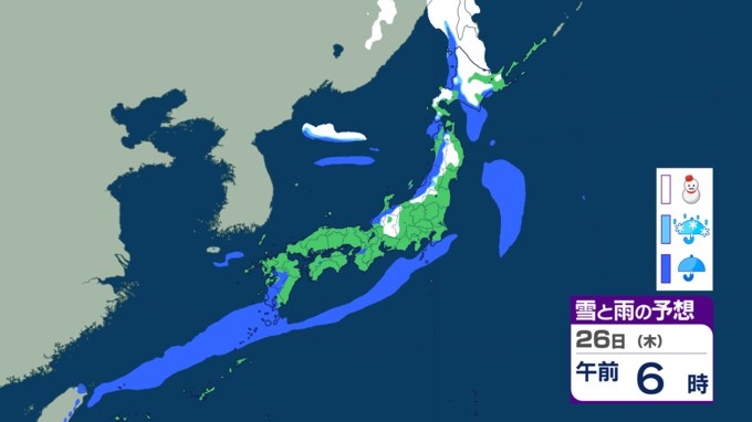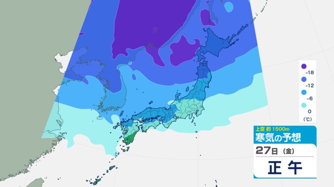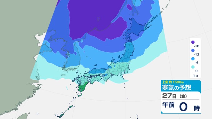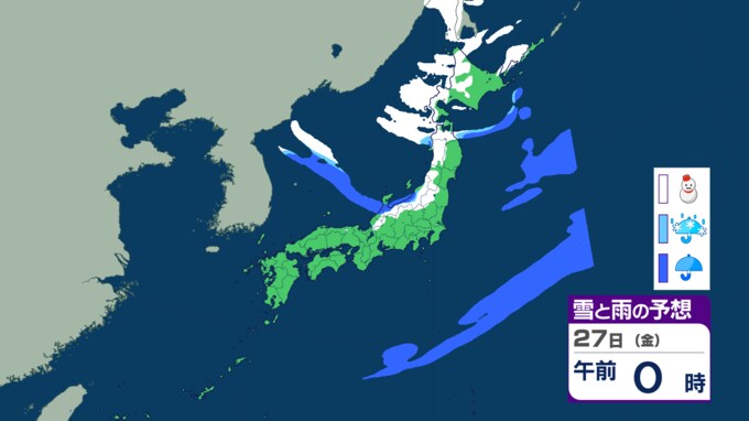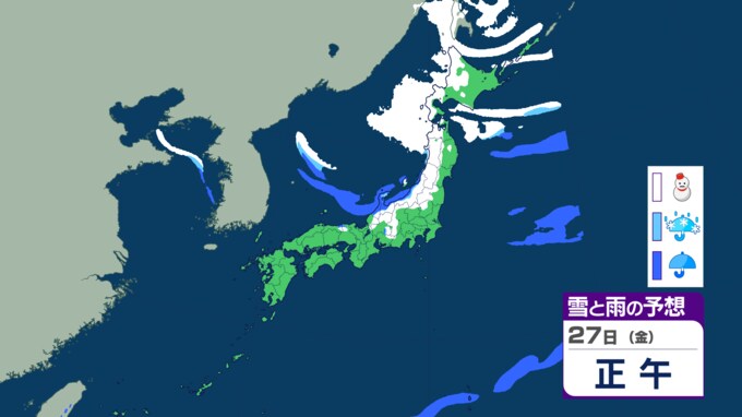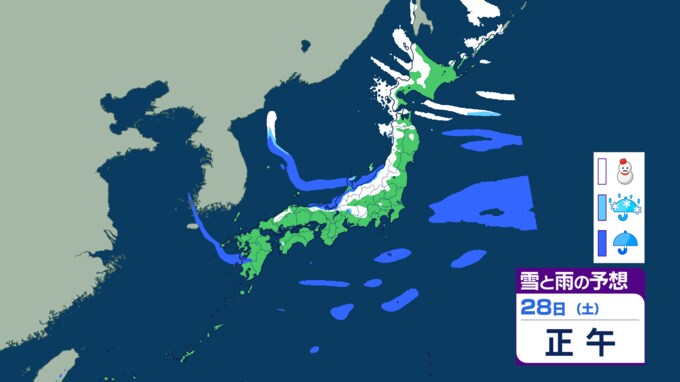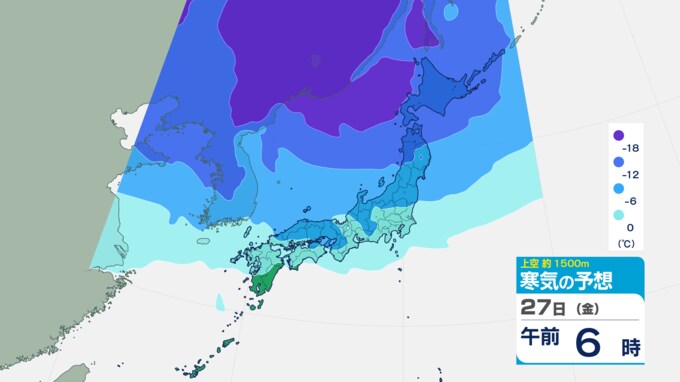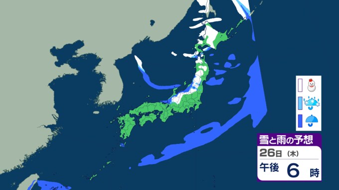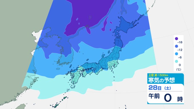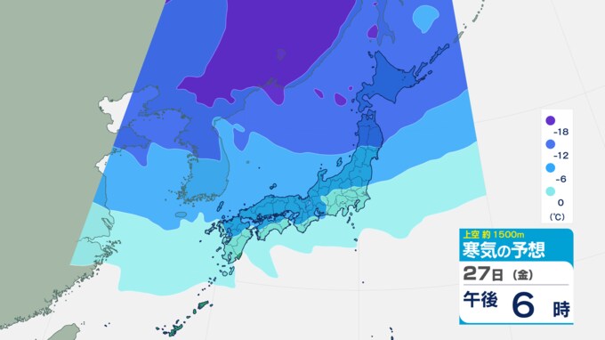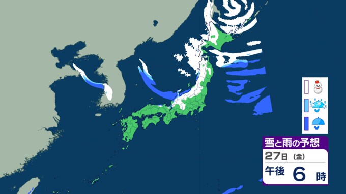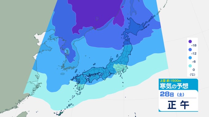気象庁によりますと、28日頃にかけて日本付近に強い寒気が流れ込み、冬型の気圧配置が強まる見込みで、日本海側を中心に荒れた天気となり、降雪量が多くなるところがあります。寒気の程度によっては警報級の雪となるおそれがあります。
