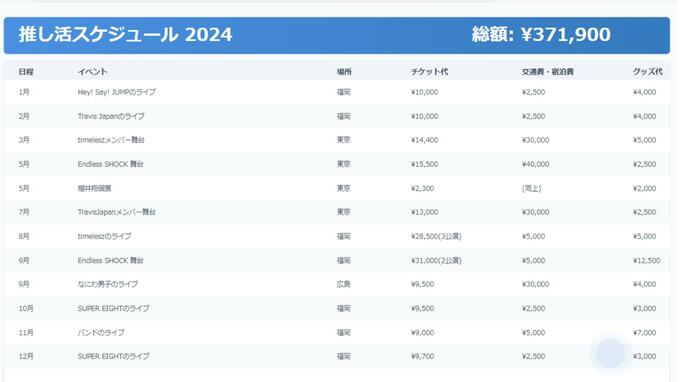 私の職場にも、様々な「推し活」人間がいる。「推し活」をしているから働ける、辛いことも乗り越えられると力を込めるのは27歳女性。彼女の推しはアイドル複数人に渡っていて、1年間の推し活代を聞くと、嬉しそうに1年の推し活を振り返ってくれた。