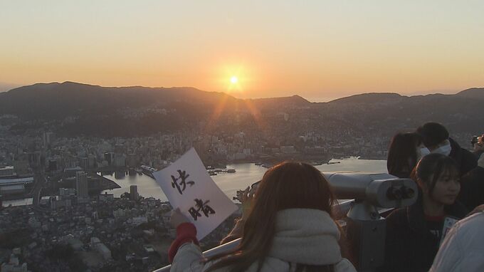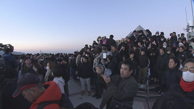 すっきりと晴れ渡った長崎市の稲佐山展望台には、元日の未明から多くの市民や観光客が集まりました。