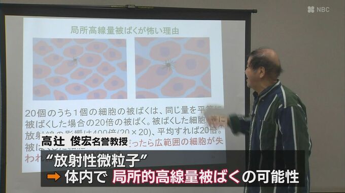高辻さんは被爆体験者らでつくる会の会合で「放射性微粒子は体内で局所的な高線量被ばくを引き起こす可能性がある」と指摘。1945年にアメリカ軍のマンハッタン調査団が行った調査で「残留放射線」が検出された被爆体験者区域にいた人たち被ばくした可能性を指摘しました。