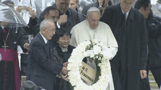 浦上教会の役員をつとめていた深堀さんは教会を訪れた修学旅行生らに被爆体験を伝える活動を続け、2019年には爆心地を訪れたローマ教皇フランシスコに花輪を手渡し、共に核兵器廃絶と世界の平和が実現するよう祈りました。