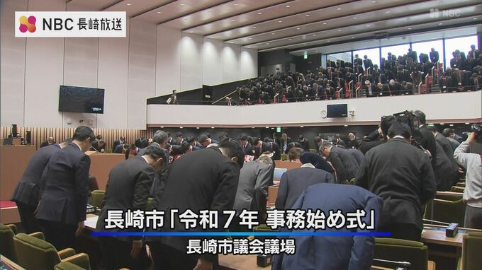 鈴木市長は年頭のあいさつで新たな長崎の魅力作りなどにオール長崎で取り組む必要性を訴えたほか、今年は「被爆80年」の節目で、平和へのメッセージを発信する重要な年だと述べました。
