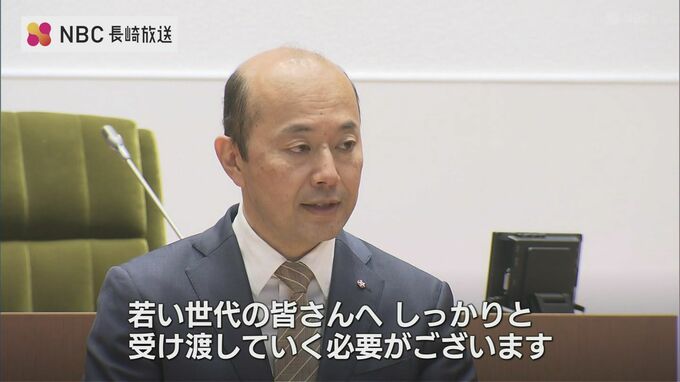鈴木史朗長崎市長「核兵器のない世界の実現のため被爆者からの平和のバトンを若い世代の皆さんへしっかりと受け渡していく必要がございます」
