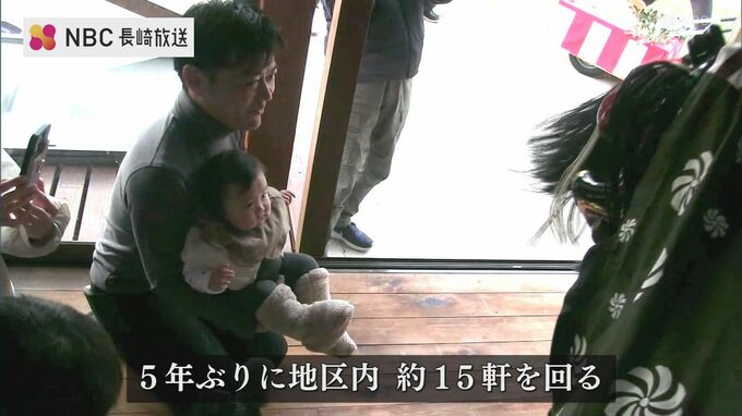 今月3日、保存会の一行が貝津神社で初舞を奉納したあと、コロナ禍を経て5年ぶりに地区の家々およそ15軒を回りました。